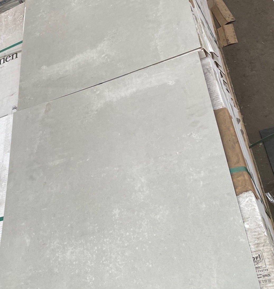 Piero Light Grey is a PVC tile that is water-resistant and has a strong wear layer (0.55 mm).